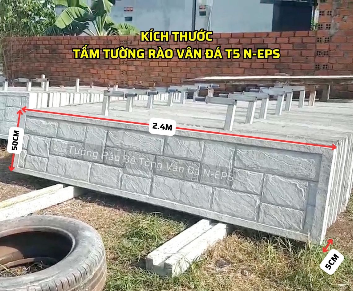 Tấm tường rào bê tông vân đá T5 - Tường rào mỹ thuật