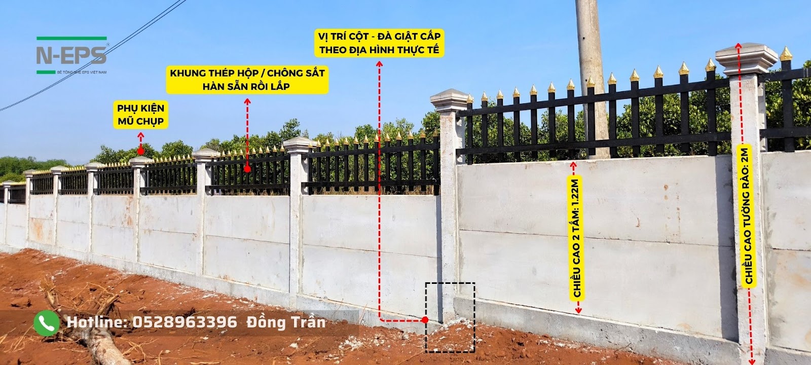 Bên cạnh đó, N-EPS cam kết cung cấp đa dạng mẫu mã, kích thước phù hợp với mọi công trình từ nhà ở, khu công nghiệp, khu đô thị đến các dự án quy mô lớn. Đồng thời chúng tôi còn hỗ trợ hướng dẫn thi công tận nơi, đảm bảo khách hàng có thể lắp đặt nhanh chóng, đúng kỹ thuật và đạt hiệu quả cao nhất. Đội ngũ chuyên gia giàu kinh nghiệm của N-EPS sẽ trực tiếp tư vấn, hướng dẫn từng bước, giúp tối ưu thời gian và chi phí thi công, mang đến giải pháp hàng rào bê tông đúc sẵn bền vững, an toàn và thẩm mỹ.